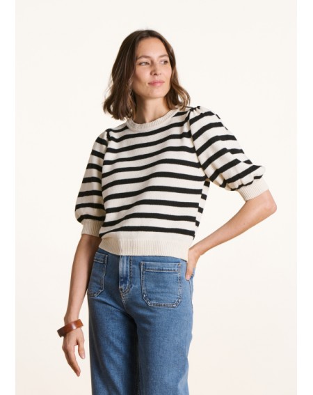Nouveau Aperçu rapide Pull FELIXIA La fée... PULL MARINERE ENCOLURE RONDE , MANCHES COUDES BOUFFANTES, PETITES FRONCES EN TETE DE MANCHES, FINITIONS BORD-COTE Liste de souhaits Ajout panier 99,00 €