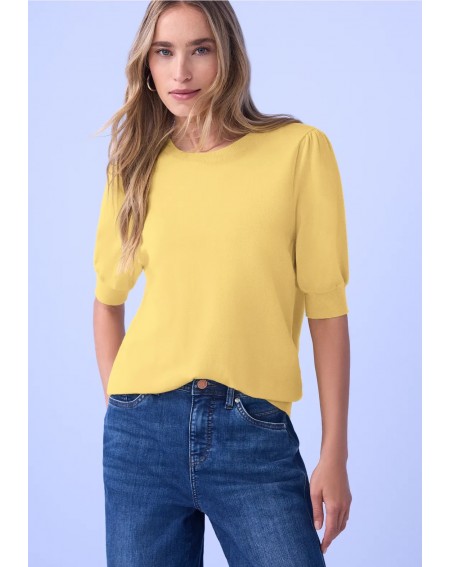 Nouveau Aperçu rapide Pull 303768 Street One - Jaune Le pull en tricot à manches courtes bouffantes et col rond de Street One pour femmes apporte une légèreté fraîche à ton look casual. Le design... Liste de souhaits Ajout panier 40,00 €
