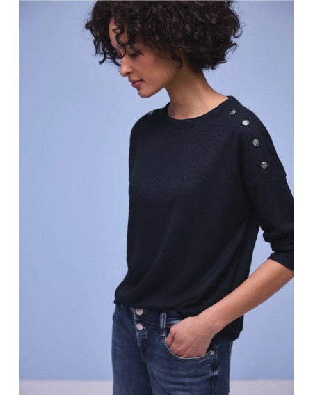 Nouveau Aperçu rapide Pull 324632 Street One - NAVY Ce pull au look sportif de Street One pour femmes met des accents subtils avec des détails de boutons sur les épaules. L'ourlet élastique avec... Liste de souhaits Ajout panier 49,99 €