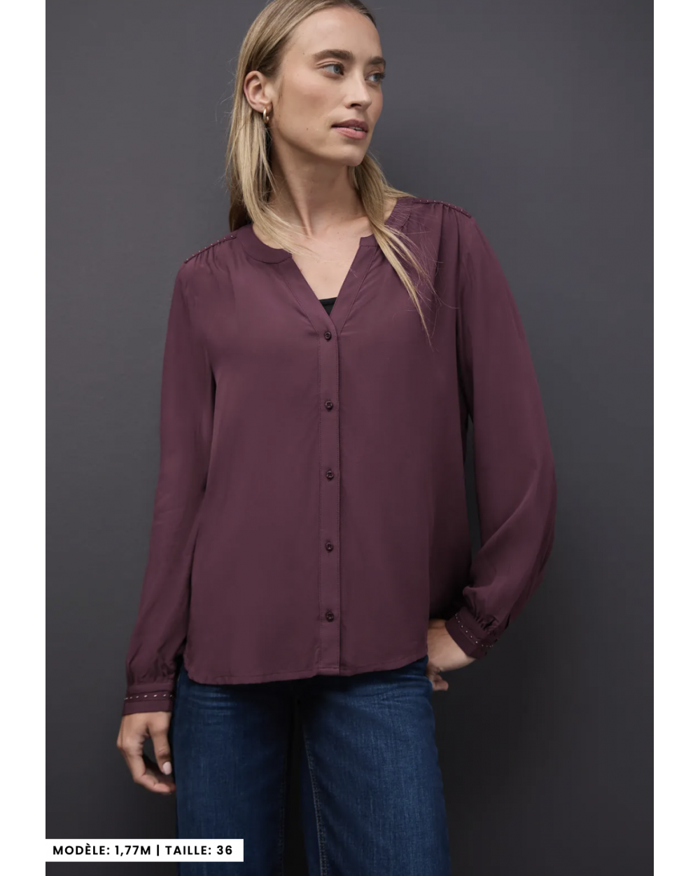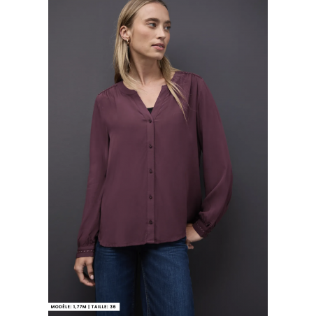 Le chemisier de Street One pour femmes séduit par ses détails de rivets, son col fendu féminin et sa fine patte de boutonnage. La qualité douce de la viscose assure un port agréable - parfait pour des looks décontractés avec un raffinement mode.
