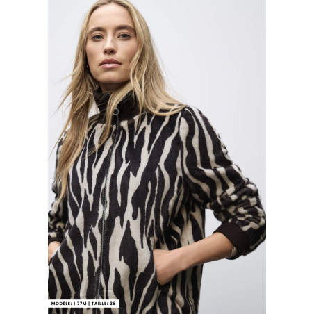 Avec le blouson Fake Fur de Street One pour femmes, tu fais une véritable déclaration. La douce qualité de la fausse fourrure dans un imprimé zèbre branché assure un look remarquable, tandis que le col montant, le cordon de serrage et les poches latérales complètent le design de manière fonctionnelle. Parfait pour des tenues tendance avec un facteur de bien-être.