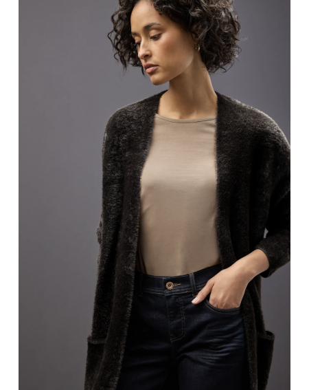 Le cardigan long de Street One pour femmes séduit par sa qualité de fil plume doux et son look décontracté. Porté ouvert et avec des poches plaquées, il est idéal pour des tenues de superposition confortables. Son toucher moelleux en fait une pièce parfaite pour se sentir bien pendant les journées plus fraîches.