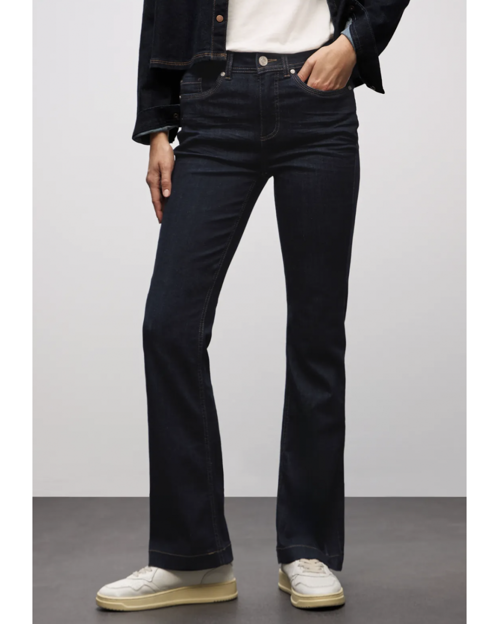 Le jeans Bootcut de Street One pour femmes présente un look rinsed moderne et marque des points avec sa coupe Slim Fit qui souligne la silhouette et sa taille High Waist. Les Bootcut Legs assurent une silhouette flatteuse, tandis que le mélange de coton avec une part de stretch offre un confort agréable. Le pantalon en jean Bootcut se combine de multiples façons - de la décontraction au chic.