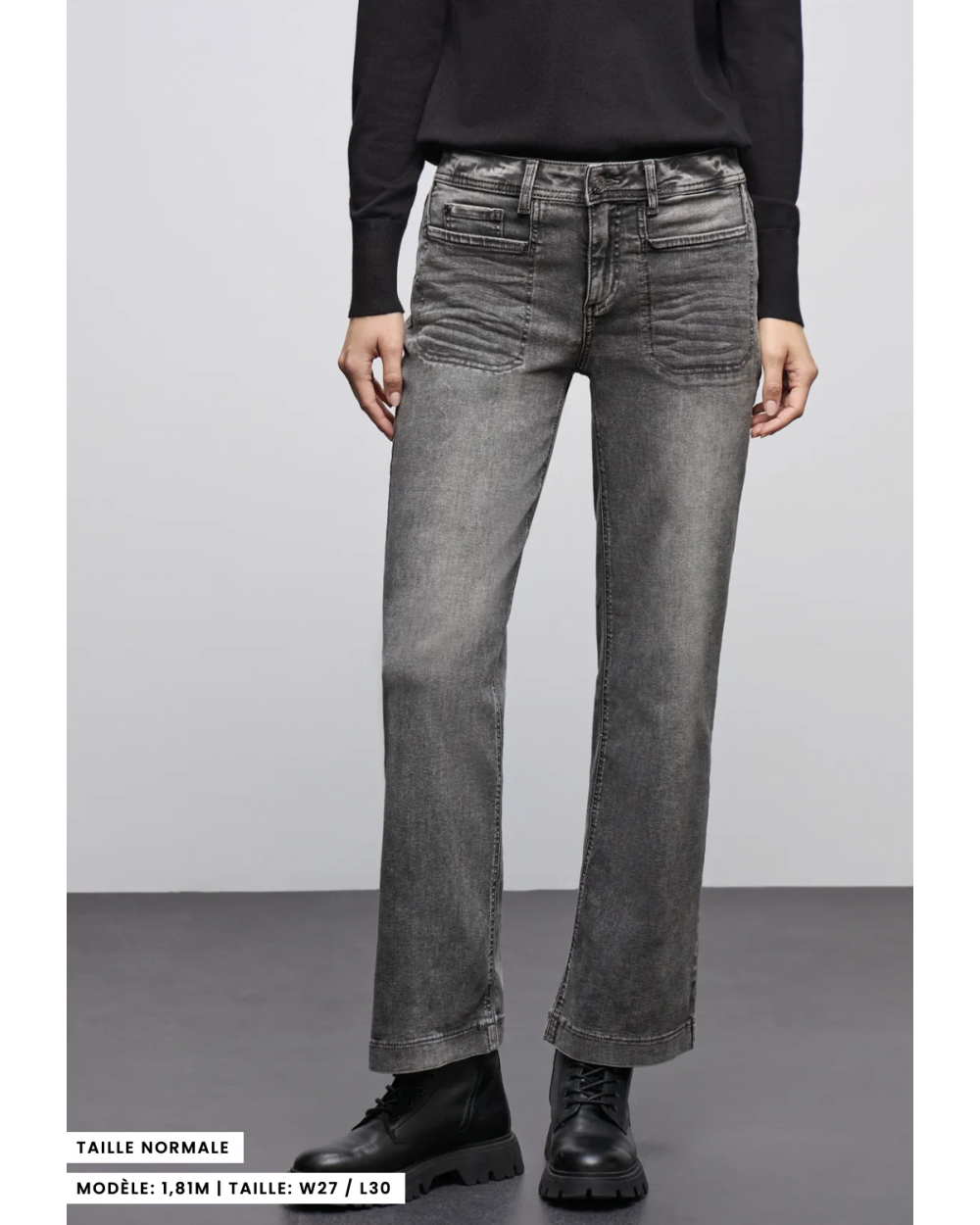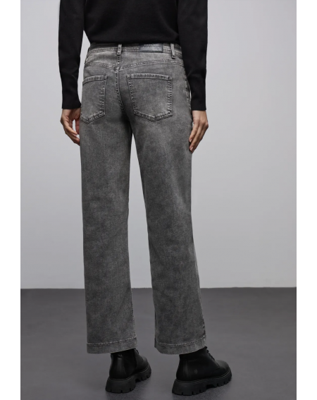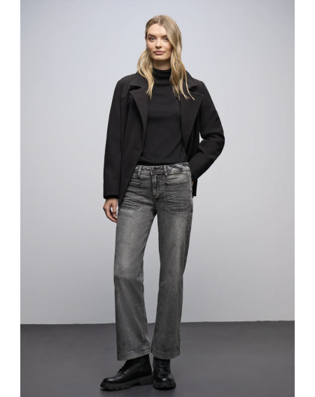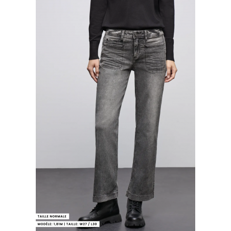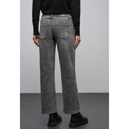 Ce jeans Wide Leg de Street One pour femmes en coupe Casual Fit séduit par son délavage gris et sa taille Mid Waist. Les poches plaquées et le mélange de coton avec une part de stretch assurent un look moderne avec un facteur de bien-être.