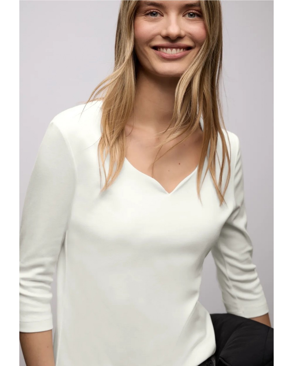 Dans le style Ada, ce t-shirt en jersey de Street One pour femmes apporte une légèreté féminine dans ta garde-robe. L'encolure en cœur raffinée et les manches 3/4 en font un compagnon charmant pour plusieurs saisons. Le doux mélange coton-modal assure un grand confort - idéal comme sous-shirt ou porté seul pour des looks simples mais stylés.