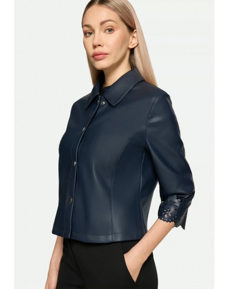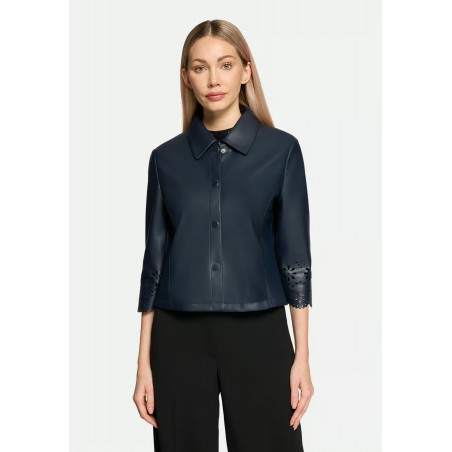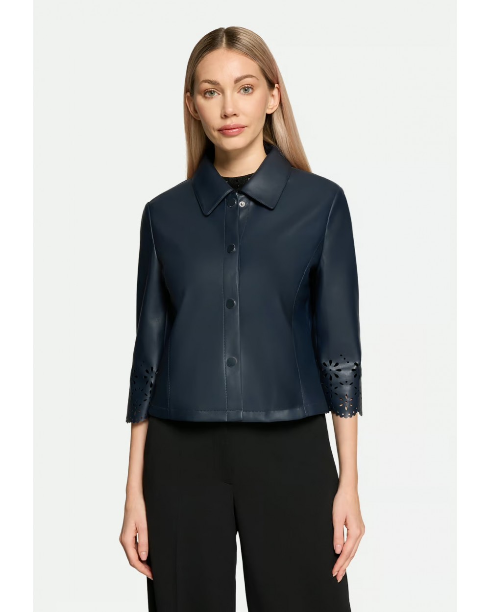 Veste à coupe droite, longueur mi-longue et col chemise classique. Son coloris uni lui confère une allure moderne et féminine, tandis que sa fermeture à boutons-pression apporte une touche d'élégance et facilite l'enfilage et le retrait.