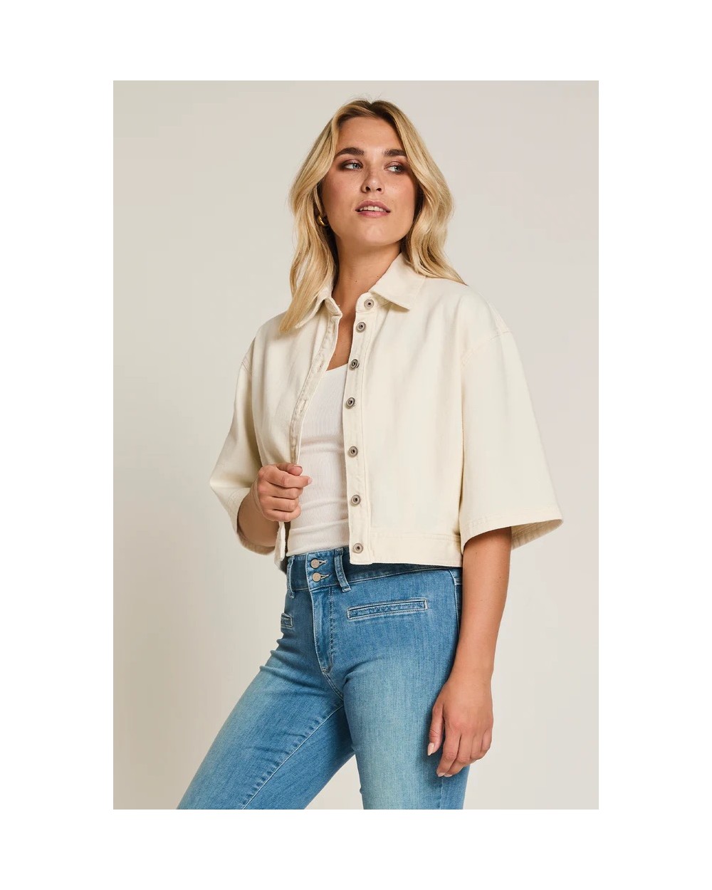 jacket Mauve jacket une jacket en denim ample jacket manches trois-quarts.