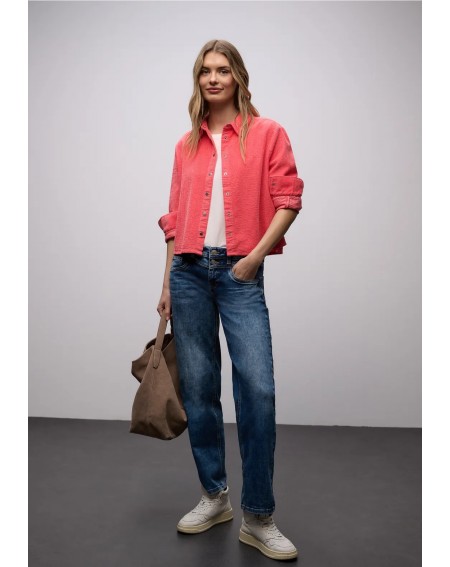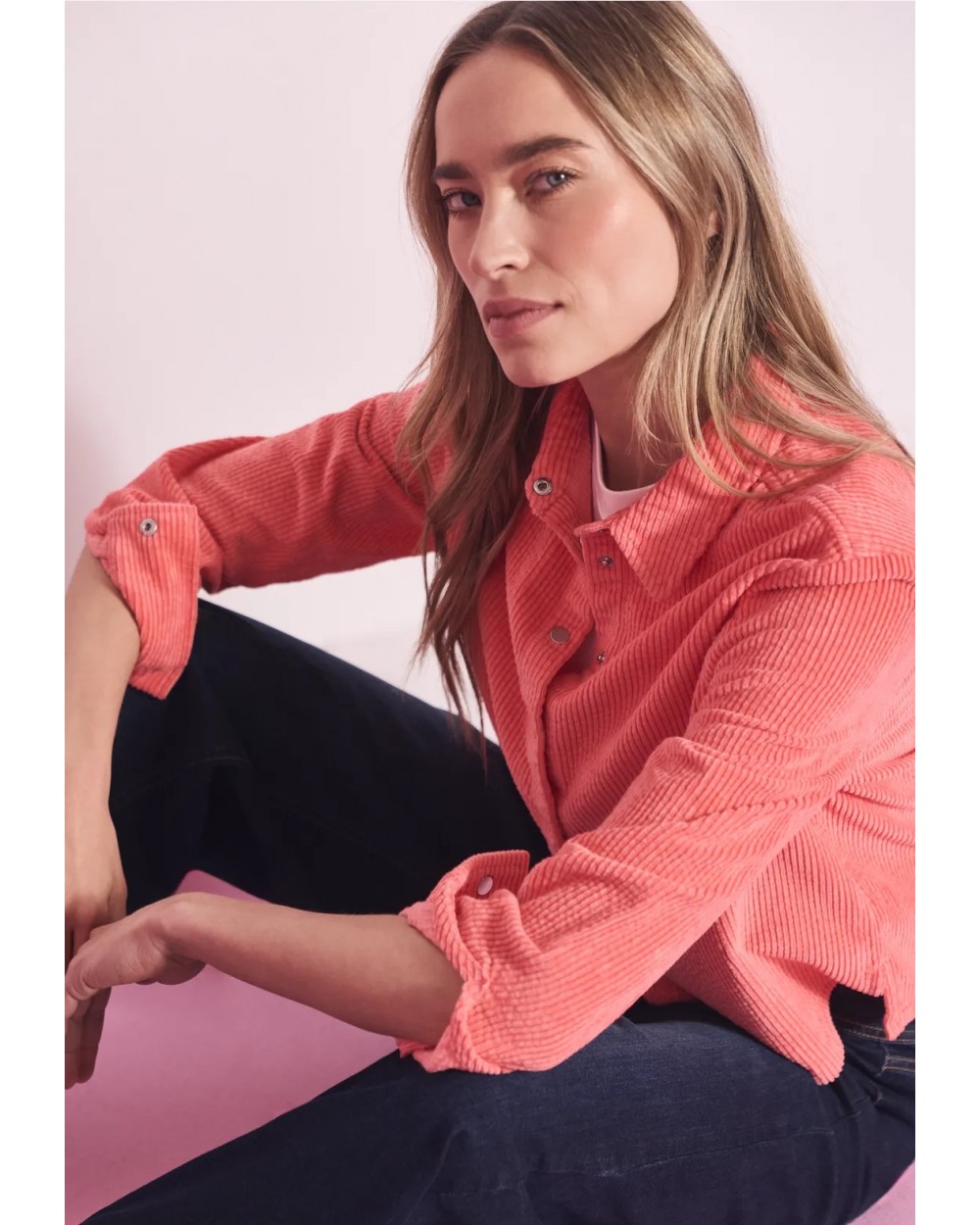 La surchemise en velours côtelé de Street One pour femmes apporte une touche rétro et décontractée à ton look casual. Avec son col chemise, sa fermeture à boutons-pression et ses fentes latérales, elle est polyvalente - qu'elle soit portée ouverte ou fermée. Fabriqué en pur coton, il convainc par son toucher doux et son look cool.